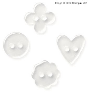 Y obtienes de regalo, o sea, GRATIS, un paquete de "Bitty Buttons" (botones en miniatura). Estos botones son "clear" y miden aprox. 1/2" de diámetro y las formas coordinan a la perfección con "Itty Bitty Shapes Punch Pack" (ponchador) y el "Itty Bitty Bits Stamp".
